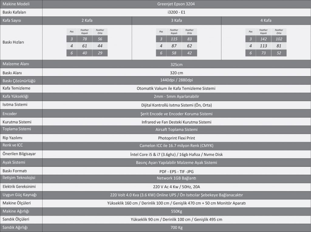 - Net 320 cm baskı genişliği